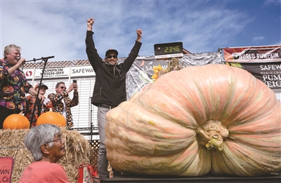 第52届世界南瓜大赛13日在美国加利福尼亚州半月湾举行。美国工程师兼园艺爱好者布兰登·道森凭借自己种出的1064公斤重南瓜一举夺魁,赢得两万美元奖金。