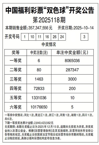 中国福利彩票“双色球”开奖公告