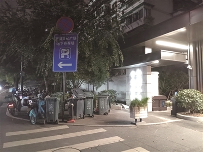拱墅区朝晖街道回复:此处垃圾桶属于中北公寓。据了解,物业晚上将桶拖至此处便于第二天清早直运公司清运,已和物业联系尽量晚一点再将桶拖至此处。