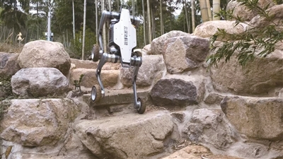 由于采用轮足复合行进模式,“汪汪仔”和人一样能轻松跨越很多障碍。