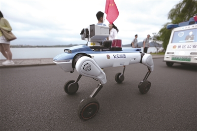 在刚刚过去的国庆假期,如果你曾去西湖边游玩,可能见过一只造型特别的轮足机器狗。它跟随在警员左右,一同执行巡逻与安全宣传任务,灵活的身影引得众人纷纷举起手机记录下这一幕。