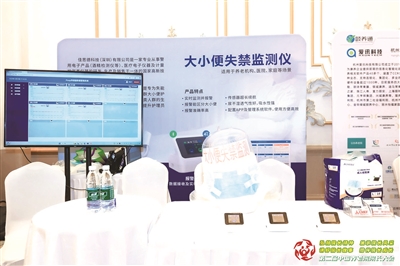 现场,多款智能化成人尿不湿也引起了大家的关注。其中一款尿不湿中间搭载一小片高精度湿度传感芯片与无感监测系统,能实时检测使用者的尿量、温度、睡姿等数据至小程序和App平台,帮助失能失智的老人降低褥疮与感染风险。