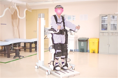 浙江省人民医院临床研究病房里,患者在智能康复机器人帮助下进行康复训练。 医院供图