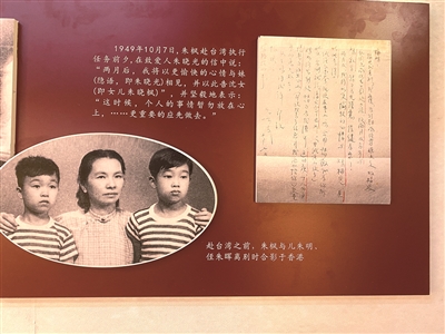 赴台前,朱枫与儿朱明、侄朱晖合影于香港。