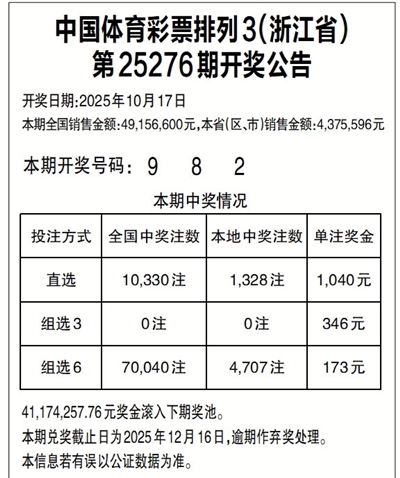中国体育彩票排列3(浙江省)