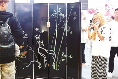 “太漂亮了!”来自绍兴的徐女士在“屏风之上”展区前连连赞叹。