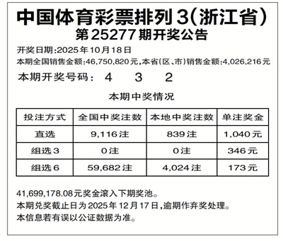 中国体育彩票排列3(浙江省)
