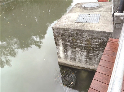 昨天上午橙柿直通车记者来到新开河太平弄段,在王先生的指引下找到了这个窨井。它是位于河边一个由水泥建起来的高台,上面有两个窨井盖,都写着“污”字。河道管理中心的工作人员证实这是一个污水中转站,转接附近区域的污水到总管中。位于中转站壁的涌口刚好露出水面,呈黑褐色的污水灌进新开河,弥漫着一股臭味。