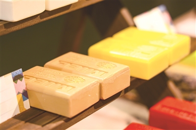南法手工艺术街区马赛香皂摊位前围满了人,摊主高声提醒:“就剩最后这些了。”昨天,160块香皂几乎售罄,只剩下几块茉莉味、椰子味、薰衣草味的。