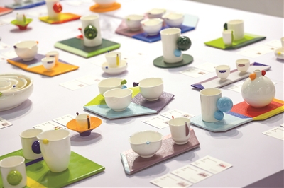 在“时间的容器”国际陶瓷艺术展区,张女士带着女儿买下了日本陶艺家山本哲彦的一架陶瓷钢琴。