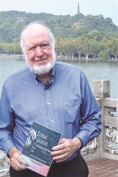 凯文·凯利获赠杭州的礼物,英文版《寻龙诀:为什么“六小龙”诞生在杭州?》一书。