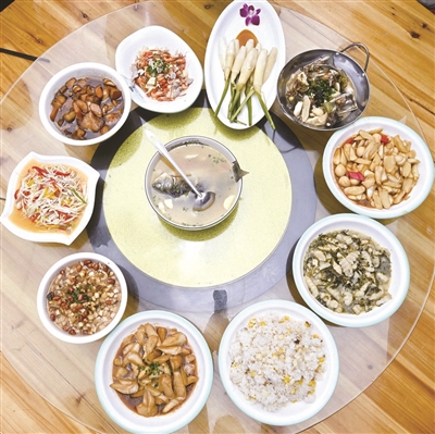 最受欢迎的“茭白宴”当然不能缺席。村里厨艺最好的农嫂们已经准备好,饭焐茭白、油焖茭白、茭白甲鱼煲、茭白烧肉、茭白三丝、茭白酱丁、茭白鲫鱼汤、茭白河虾……一桌十余道菜色,光听名字就流口水。