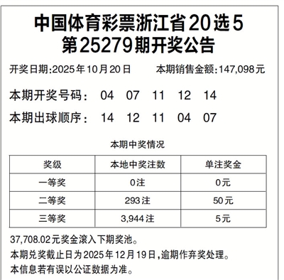 中国体育彩票浙江省20选5