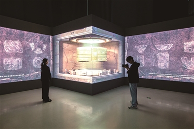 展厅入口处,是穿越五千年而来的“玉琮王”。杭州国家版本馆的数字非遗展品运用数字化技术,突破时空限制,让现代人能在古人的智慧岁月中漫步,领略文化遗产的精妙细节及其背后的版本故事。