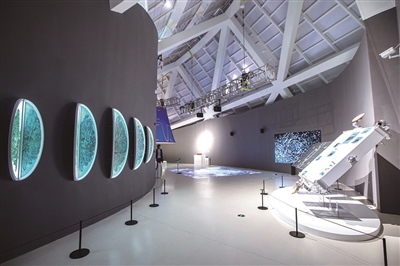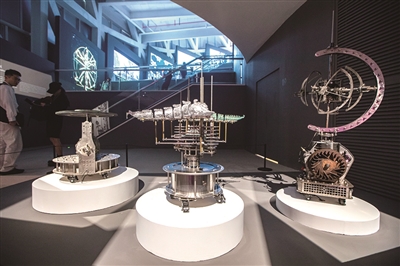 现场还有许多前沿科技领域与媒介的探索。如“三体计算星座”,这是之江实验室协同全球伙伴合作共建的太空计算基础设施,通过打造面向全球开放的科技创新合作平台,从而实现将人工智能送往太空。由之江实验室创作的《计算卫星模型》是“三体计算星座”首发任务中的计算卫星模型,描绘了卫星各功能组件的设计细节,展示了卫星在轨运行时的工作状态。