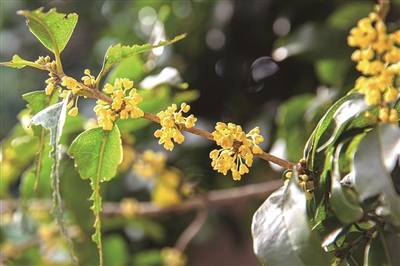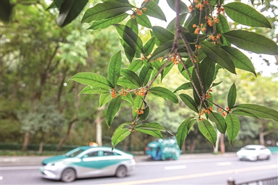 桂花“虽迟但到”。昨天,南山路、曙光路、杨公堤、赵公堤、虎跑路、龙井路上,不少桂花已经含苞待放。在杭州著名的赏桂胜地满觉陇,也有不少桂花开了,村民们已经做好准备迎接游客。一位在路边市集蒸桂花糕的村民说:“终于香了,又要闹猛起来了。”