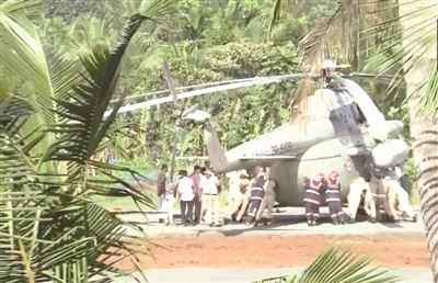 印度亚洲新闻国际通讯社援引在场官员的话报道称,直升机着陆后,停机坪表面就出现部分塌陷。警方和消防部门人员迅速前往现场,徒手将直升机推出塌陷区域。