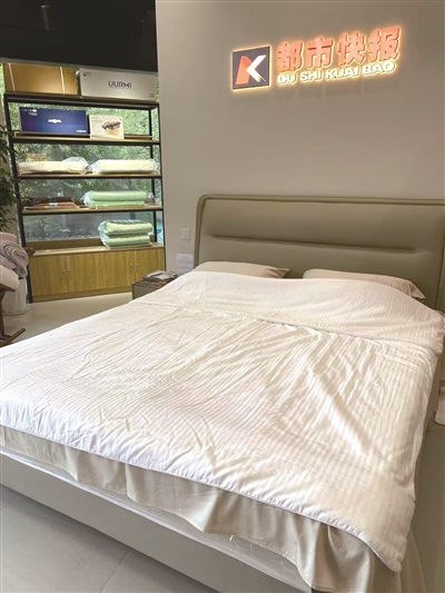 盖在身上轻,透气不压身,不燥。被子柔和,肩膀这些地方自然熨帖,不闷也不会露,包裹恰到好处。(方志坚)