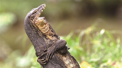 两只看似“拥抱”实际在打架的巨蜥