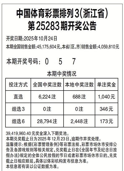 中国体育彩票排列3(浙江省)
