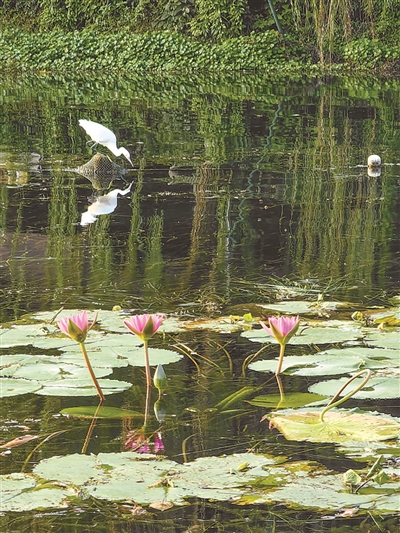夕阳余晖下,涌金池睡莲披上金光。橙友“木心禅觉” 摄