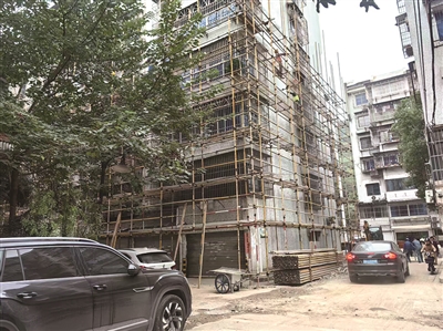 昨天上午,橙柿直通车记者来到富丽花园,小区绿化带正在挖开,其中3号楼的外围正在搭架子。