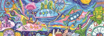 插画狮:《古今穿越·科幻世界》杭州市下沙第一小学二(4)班 徐晨凯