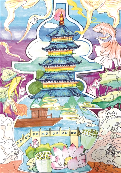插画狮:《韵味杭州》 杭州市文澜实验学校五(6)班 叶姚馨