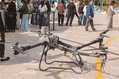 空中,无人机穿梭往来,化身“空中快递员”,它们自动精准降落,精准投递纪念礼品。人群中传来阵阵惊呼,这是科技带来的惊喜,也是未来生活的日常预演。