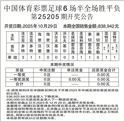 中国体育彩票足球6场半全场胜平负