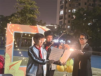 学校的校长团队也倾情登场,献唱了一首《我的未来不是梦》,书记、校长夏明深情地说:“今晚的草坪上,歌声与欢笑交织,我看到的不只是精彩的表演,更是亲子之间最动人的对话。当父母放下手机专注聆听孩子的歌声,最好的教育,永远发生在用心的陪伴里。”