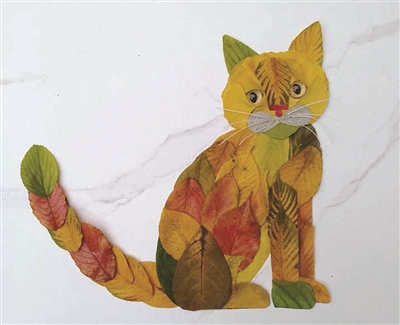橙友“幽默之余”:#和动物元素过秋#星期天在公园捡了一些秋天的落叶,在家中地板砖上拼了一只可爱的猫咪,这真是捡树叶捡到宝了,物超所值。