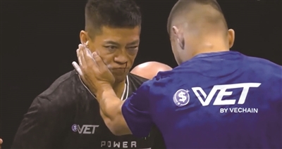 比赛视频显示,当地时间10月31日,赵鸿刚参加世界扇耳光大赛时,对阵阿曼塔耶夫,在第三回合被对手KO痛苦倒地,脸色惨白。比赛中,他眉角受伤需缝针,眼睛瘀青。