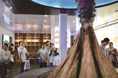 行程中,大家还探访了火山博物馆,了解亿万年前古火山喷发如何塑造这座岛屿;在生物多样性展览馆,认识岛上特色生物。最后大家戴上3D眼镜,跟随“蛟龙”号潜入万米深海,见证发光生物在黑暗中舞动,感受“蛟龙入海”的震撼。