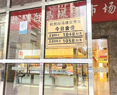 昨天上午10点半,杭州白马珠宝市场一楼58号商户像往常一样更新了金价:足金999和足金9999分别是985元/克和995元/克(工费另计)。