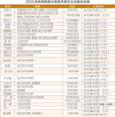 2025年张同泰膏方参茸节膏方义诊医生名单