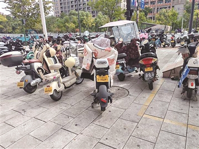 地铁池华街站B口 电动自行车乱停乱放