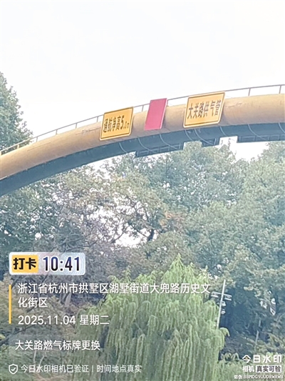 昨天,这位橙友再次发帖为相关部门点赞:运河上的大管道标牌已经更新了。快报10月29日刊发橙友反映的《运河上的大管道标识是不是标错了?》报道后,杭州市燃气集团有限公司十分重视,立即进行整改,联系了相关单位重新制作新牌。11月4日上午,杭州能源集团工程科技有限公司工作人员到达现场,将标牌进行更换,现在标牌上写着“大关路供气管”,没有问题了。(记者 汤晨琛)