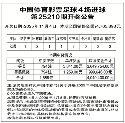 中国体育彩票足球4场进球