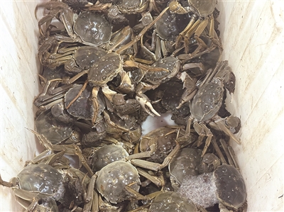 大马弄里,湖蟹是一大主角,走几步就有卖大闸蟹的摊位。一位摊主小伙热情介绍他家品质最好的大闸蟹,4两多的母蟹80元/斤,说是下雨天便宜点卖,前一天还要85元。其他各家按产地和个头大小不同,每斤价格从30元到100元的都有。路过的大姐挑了5只,称称2斤出头,163元。摊主麻利地给绑上绳子,方便带回家去。