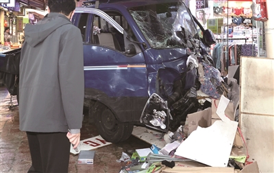 现场照片显示,货车撞进了一家商店,现场一片混乱。货车前侧也被撞毁,车窗被震碎。目前,涉事车辆已被移走,警方正在调查事故原因。