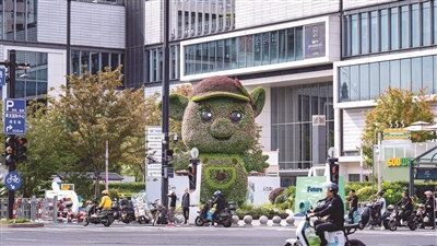 文三路与学院路交叉口的“福气猪猪” 西湖区城管局供图