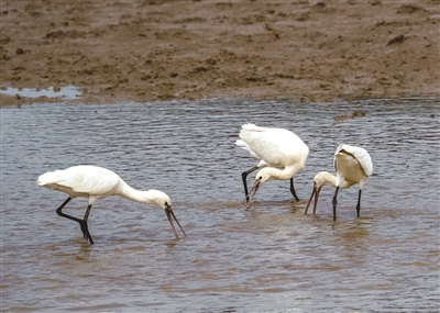 据滨江区生态环境分局介绍,有赤麻鸭、针尾鸭、赤颈鸭、琵嘴鸭、反嘴鹬、白琵鹭、黑脸琵鹭等。