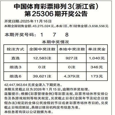 中国体育彩票排列3(浙江省)