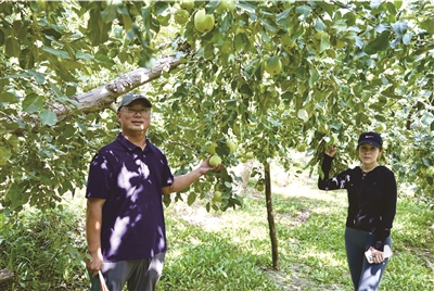为了保证每一颗苹果口感的一致,在授粉时进行统一品种嫁接。
