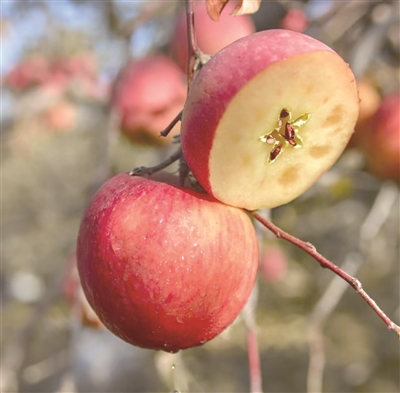 阿克苏冰糖心苹果,仅产于新疆南部天山南麓,塔里木盆地北缘的阿克苏地区红旗坡农场周边方圆30公里的地域。