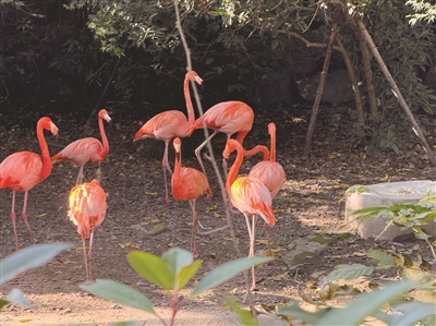 火烈鸟其实是红鹳科中六种红鹳的俗称。火烈鸟有好几个种类,比较知名的有来自古巴的美洲火烈鸟、来自北非和南欧的大火烈鸟、来自智利的智利火烈鸟,还有非洲小火烈鸟。它们的体形和颜色也各不相同,杭州动物园所饲养的,就是颜色最典型、最符合大家常规印象的美洲火烈鸟。