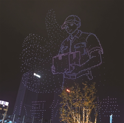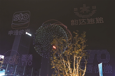 2000架无人机,为快递小哥们点赞。 记者 朱振辉 摄