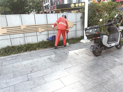 一位环卫阿姨正在捡着零碎的垃圾,她说,“白天这一块卫生是干净的,我们早上5点就过来打扫,可能是夜间到凌晨这段时间,那些夜宵摊留下来的垃圾,但早上我们都会清理干净。”
