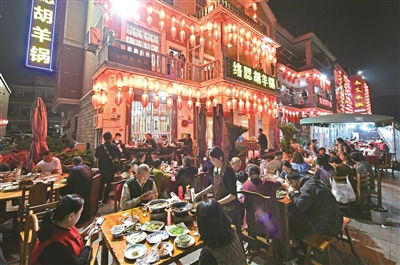 夜晚的仓前羊锅村十分闹猛 记者 陈林森 摄